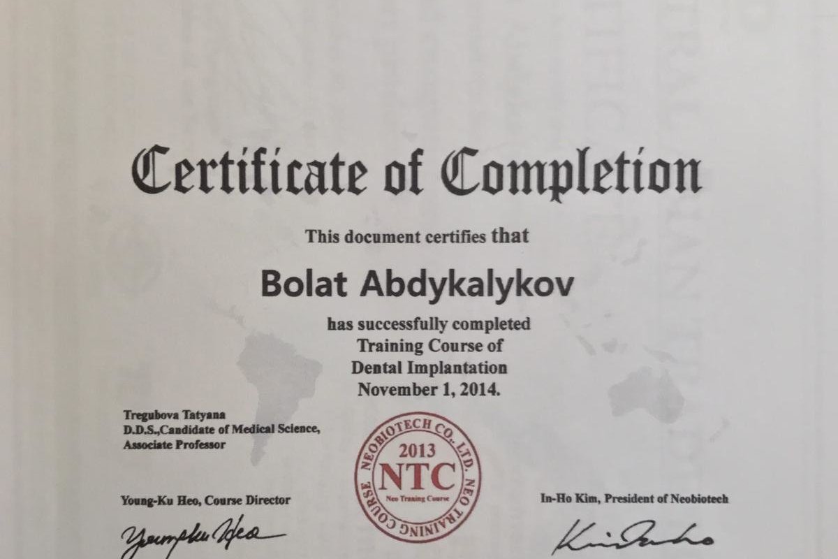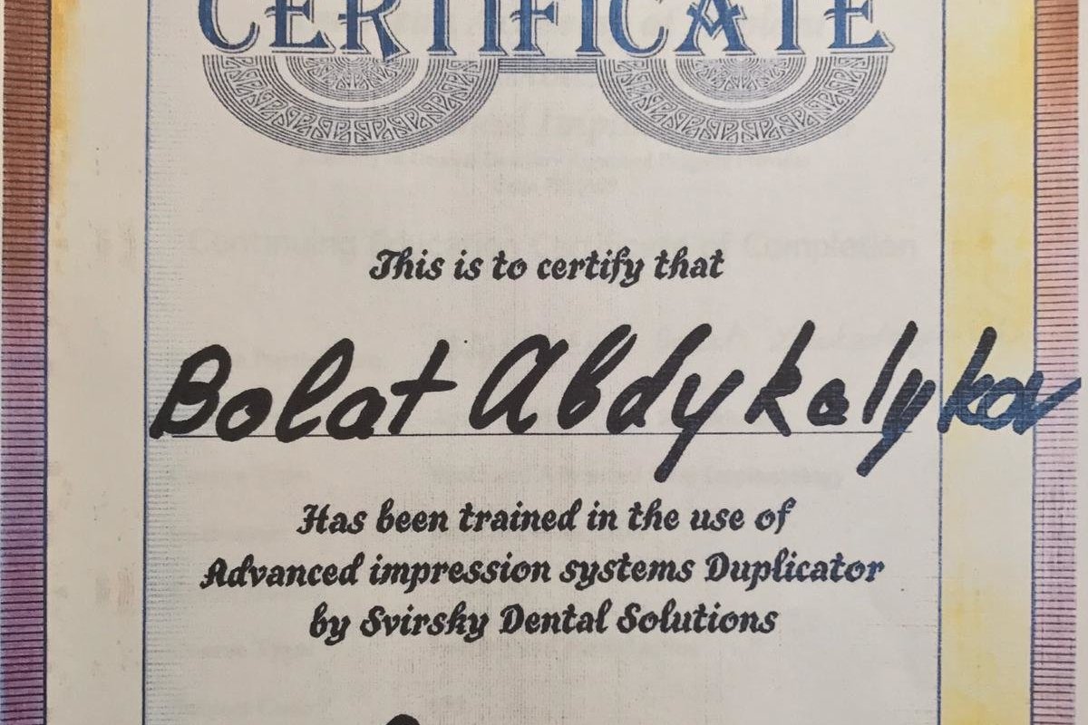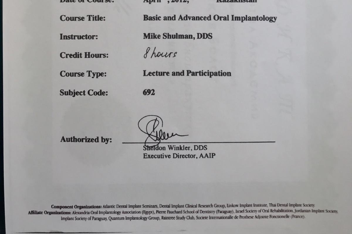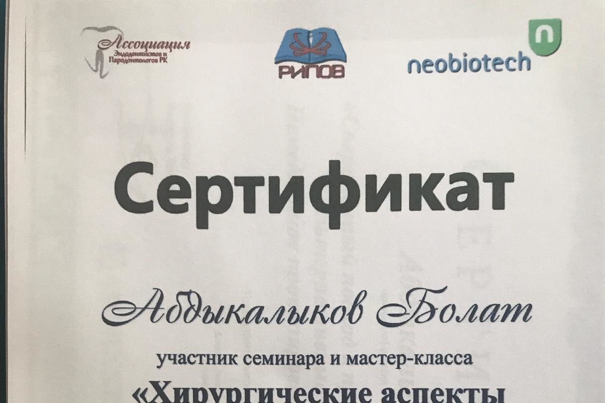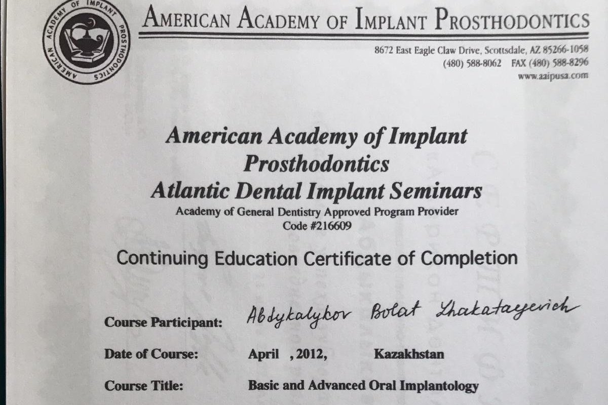 Член Национальной Ассоциации Стоматологов Казахстана, член Американской Академии Имплантологов
