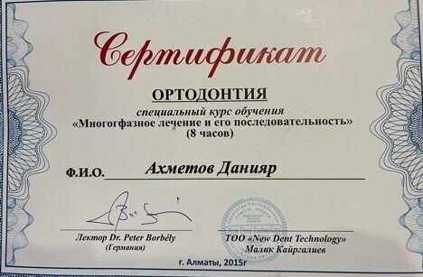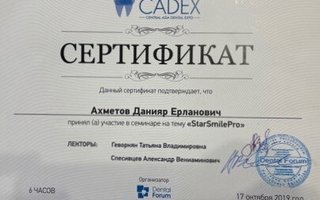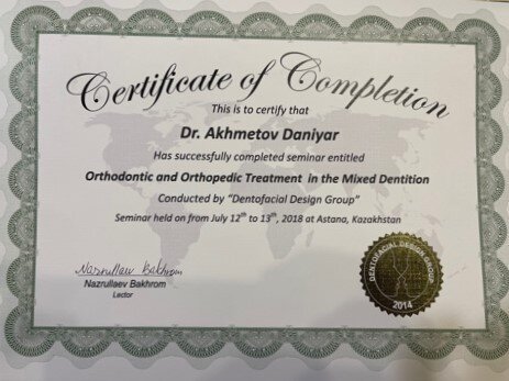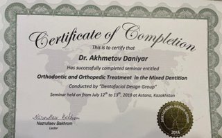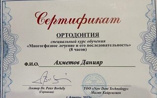 Стоматолог-ортодонтАхметов Данияр Ерланович является ортодонтом. Данияр Ахметов в том числе занимается исправлением прикуса, а также устанавливает трейнеры, ортодонтические пластинки и брекеты. Раздумывая о походе к стоматологу-ортодонту, важно не забывать, что неправильный прикус - не только эстетический изъян. Зубочелюстные патологии влияют на осанку, строение позвоночника и даже на работу мышц шеи. Ортодонтическое лечение длится достаточно долго, но это всякий раз является важной инвестицией в собственное здоровье и качество жизни.... Показать еще