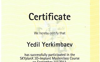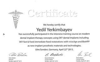 Также взяли деньги которые я считала что это первоначальный взнос за коронки но когда они позже попросили меня заплатить за коронки полную сумму, я спросила а за что была предыдущая сумма, ресепшн сначала сказала что это за слепки, когда я сказала ведь сейчас я только за слепки заплатила! После она сказала «а тогда это за диагностику»!! Я спросила какая диагностика?? Если у меня уже была диагностика и 3D снимки, тогда она сказала что это за воск за виниры!! Что когда мне сделают виниры чтобы я не ходила с отточенными зубами! Когда я сказала что мы никакие виниры не делаем! Ресепшн говорит что это за слепки и материалы!!! Так смешно что их ответы менялись постоянно!!!! Так эту сумму и отказались вернуть!! И за что она была, мне так и непонятно! В итоге потрачено время и деньги!! Но они мне все же установили два имплантанта, все говорили что “Mis” имплантанты являются Американскими и что он очень хорошие!!! Тогда как я узнала от другого стоматолога что Mis оказывается Израильские! Не знаю почему не дают истинной информации. Но, я рада что выбрала немецкие а не mis и поставили их мне здесь и меня теперь мучает тот факт что придется все же ставить на них коронки в этой же клинике дабы сохранить гарантию. Но, если они так срезают углы, то мне просто остается надеятся на чудо, что хотябы на эти два имплантанта поставят хорошие коронки но будет это делать уже другой врач этой же клиники. Но, Едиля Борибаевича я никому не советую. Мой опыт с ним был плохой и я надеюсь что мой отзыв поможет другим сделать правильный выбор. Я же жалею с выбором этой клиники.