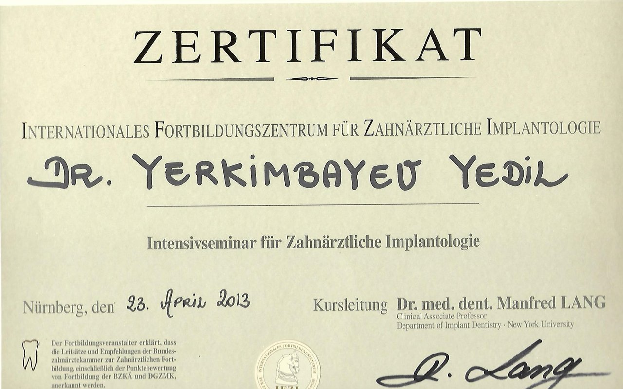 2013 — Член немецкой ассоциации имплантологов IFZI
