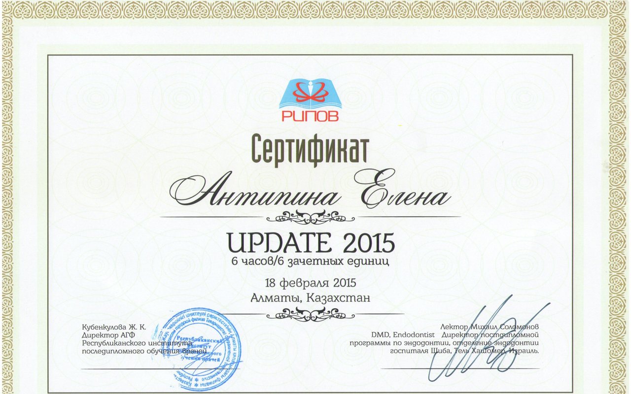 1994–2017 — Беспрерывный стаж работы. Множественные специализации как в Казахстане, так и за рубежом. Состоит в Ассоциации стоматологов Казахстана
