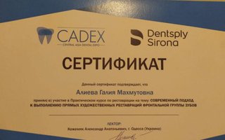 2017 — Практический курс: «Современный подход к выполнению прямых художественных реставраций фронтальной группы зубов», организатор DentalForum совместно с Dentsply Sirona, лектор Кожемяк А. А., г. Алматы;