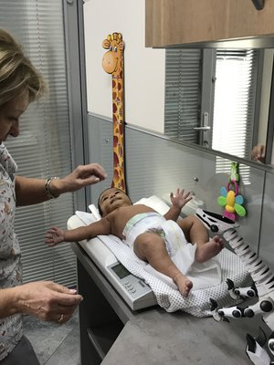 Через месяц после выписке с род дома, мамочке, необходимо показать ребенка врачу педиатру, это является обыкновенным плановым его посещением. На таком плановом осмотре врач обычно взвешивает ребенка, проводит внешний осмотр и в замеряет рост.