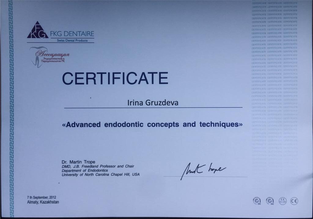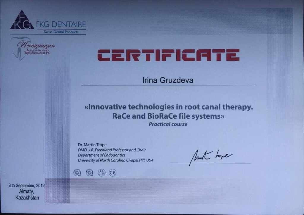 2012 г. — практический курс «Innovative technologies in root canal therapy. RaCe and BioRaCe systems»