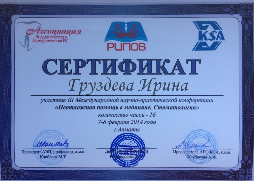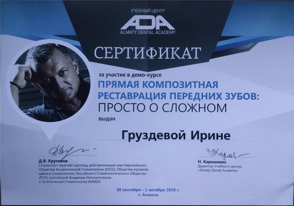 2018 г. — сертификат использования системы коффердам в практике врача стоматолога... Показать еще