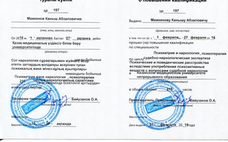 - Есть ли у Мажженова Каната Абзаловича необходимые сертификаты?
