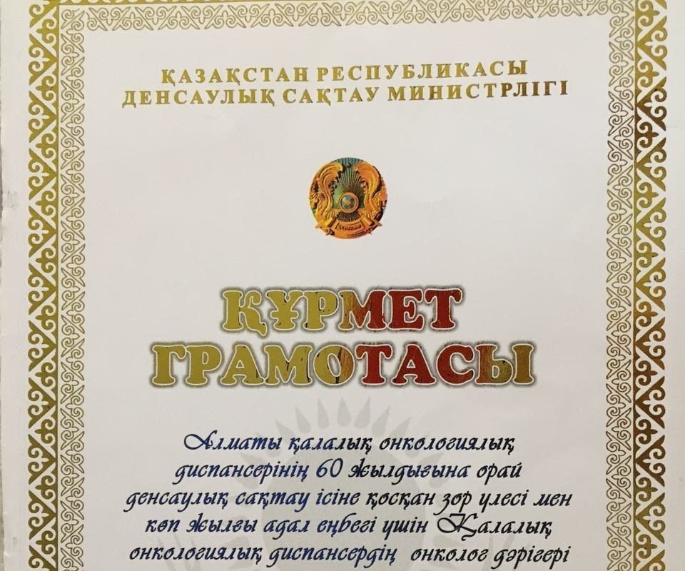 1999 г. - КазНМУ им. С.Д. Асфендиярова, лечебный факультет; 2000 г. – Интернатура по акушерству и гинекологии на базе КазГМУ