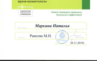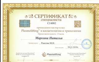 Сертифицированный специалист по «Мезотерапии» и «Plasmolifting».