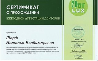 2021 — Прохождение ежегодной аттестации докторов, организатор Dent-Lux, г. Алматы;