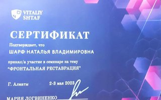 2023 — Прохождение ежегодной аттестации докторов, организатор Dent–Lux, г. Алматы;