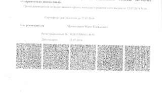 2014 — Сертификат № KZ83VBM00118630 от 23.07.2014г. Лучевая диагностика (ультразвуковая диагностика)