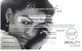 Прошла обучение "Keune Haircosmetics" по работе спа для волос на эксклюзивной лечебной линии "So Pure Natural Balance".
