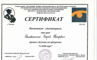 1999–1999 — Программа "LASIK-курс". Федеральное управление медико-биологических и экстремальных проблем при Министерстве здравоохранения Российской Федерации, Институт повышения квалификации, Кафедра офтальмологии
