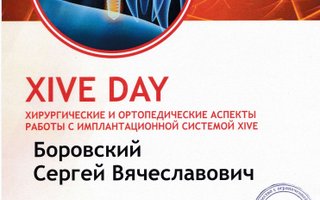 2020 — «XIVE DAY. Хирургические и ортопедические аспекты работы с имплантационной системой XIVE», организатор учебный центр «Апекс» при поддержке компании Dentsply Sirona, спикеры Романенко Н. В., Васильев С. Ю., г. Санкт–Петербург;