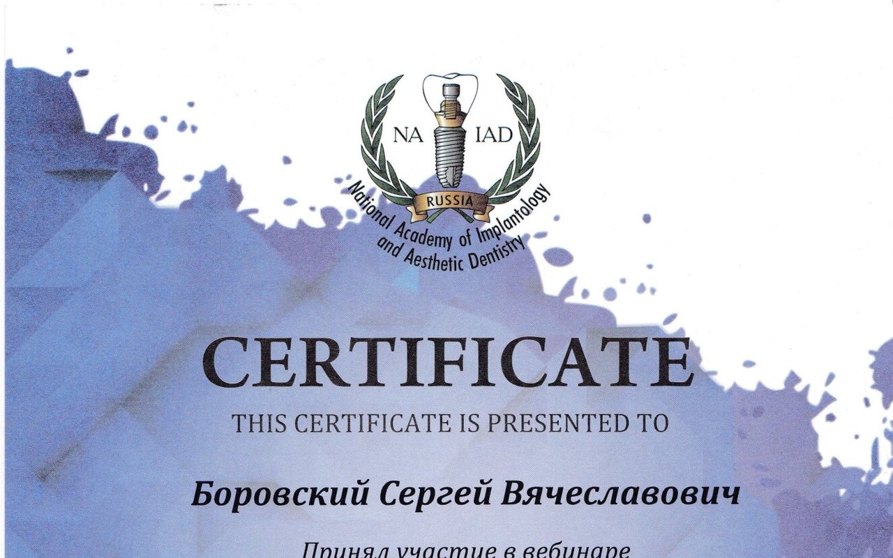 - Есть ли у Боровского Сергея Вячеславовича требуемые сертификаты?