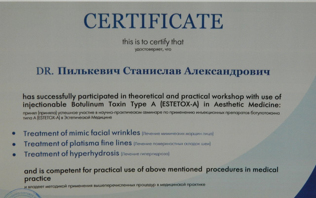 - Есть ли у Пилькевича Станислава Александровича нужные сертификаты?