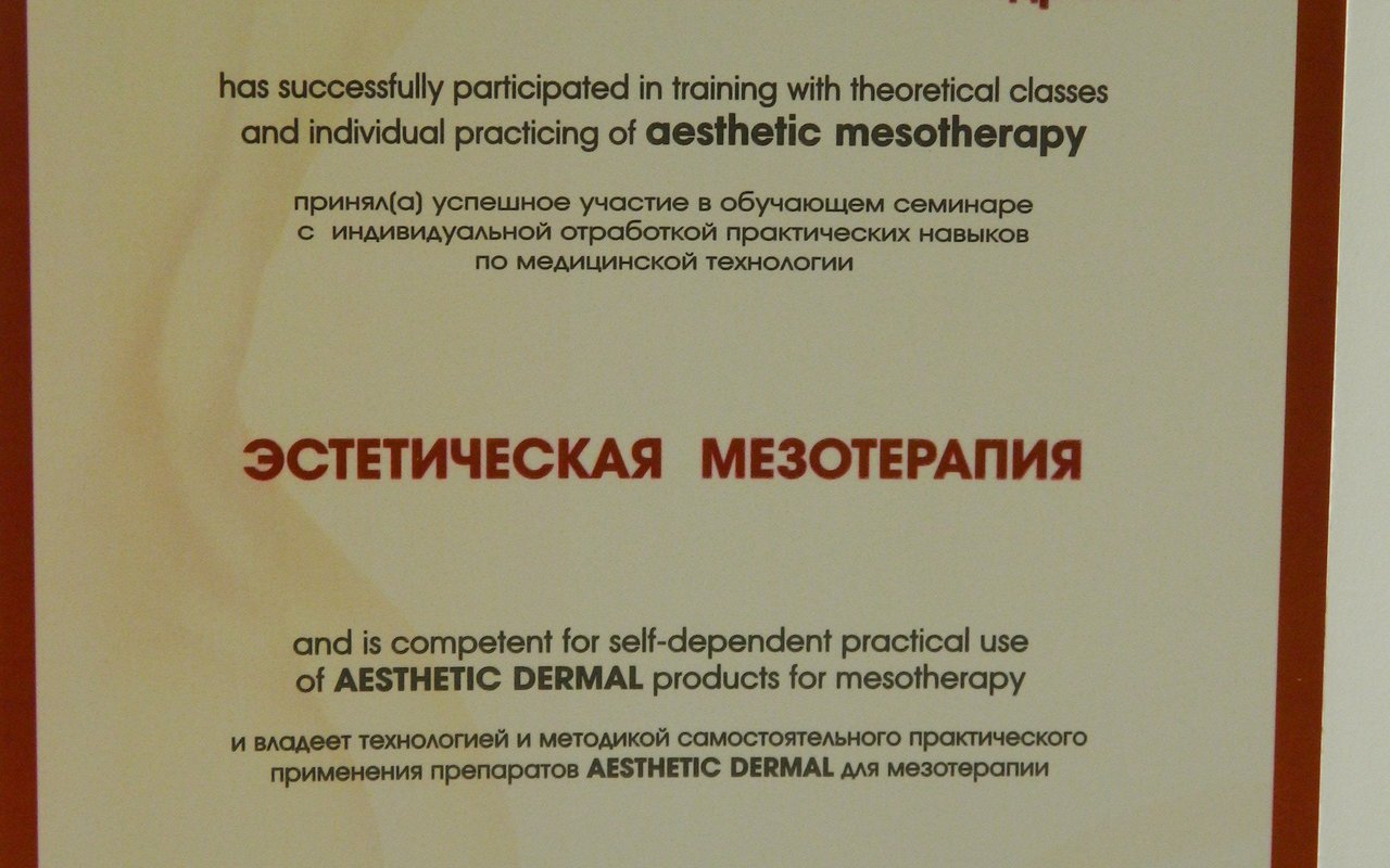 Специалист в эстетической мезотерапии, botulinum Toxin A, plasmolifting. Специалист в современных высокотехнологических вмешательствах в сосудистой хирургии. Специалист в современных лазерных технологиях в хирургии и эндоскопии. Специалист в лазерной липосакции с единовременной аспирацией жира и последующим липофилингом (технология LipoLife). Многочисленное повышение квалификации в России, Азии и в Европе