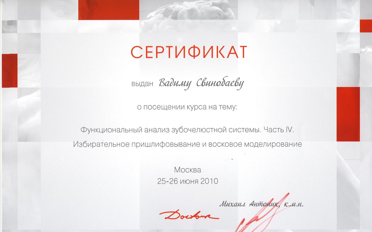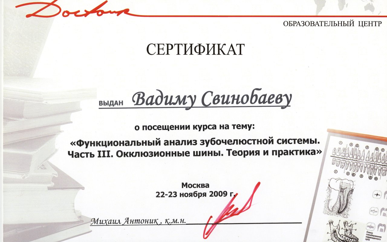 - Есть ли у Свинобаева Вадима Евгеньевича необходимые сертификаты?