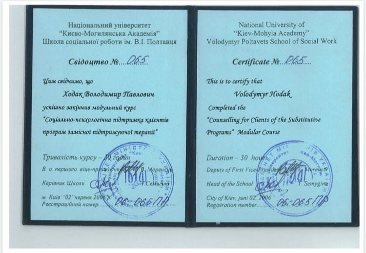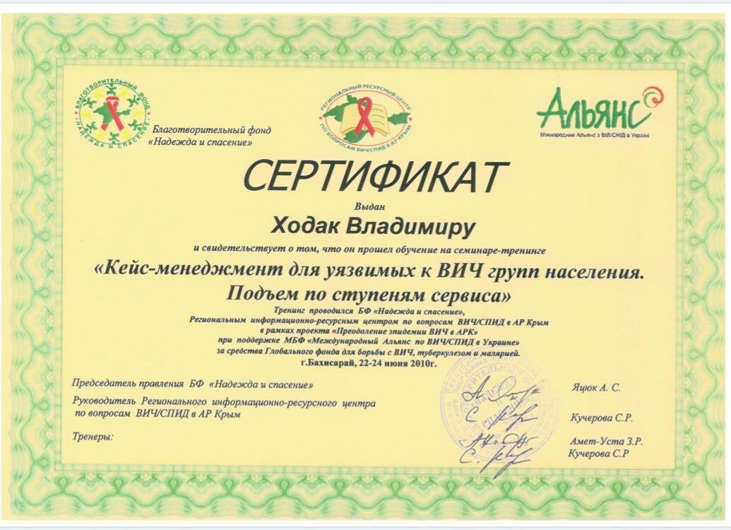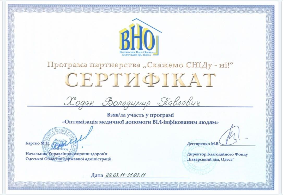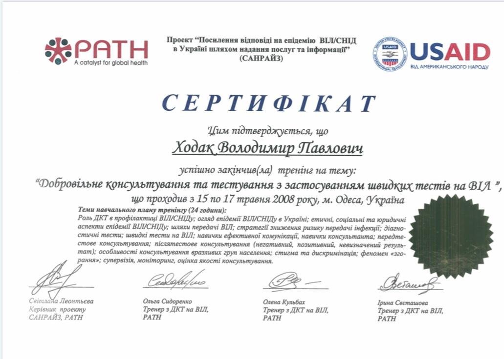 - Есть ли у Ходака Владимира Павловича необходимые сертификаты?