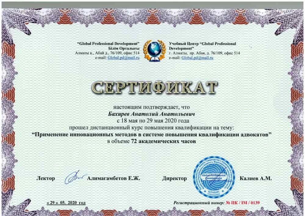 - Можно ли ознакомиться с сертификатами Бахирева Анатолия Анатольевича?