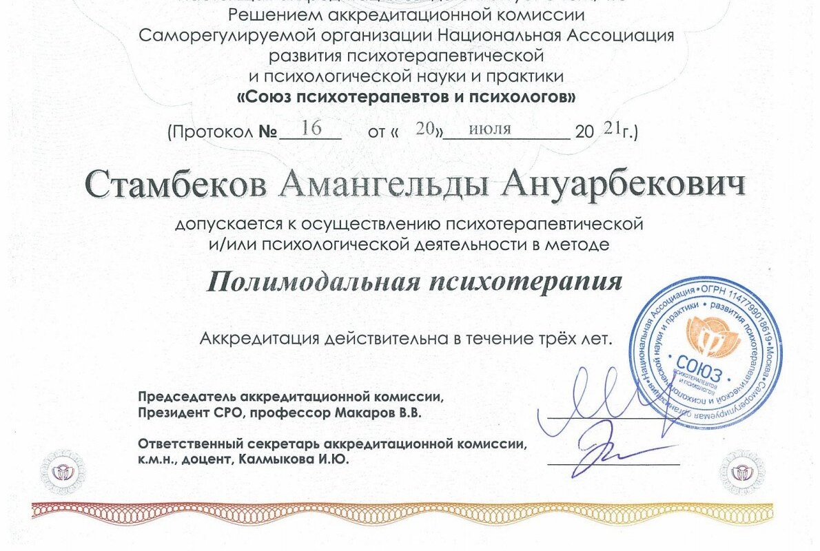 с 2004 года являюсь действительным членом общероссийской профессиональной психотерапевтической лиги.