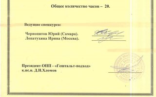 Проводимые семинары-тренинги: «Конфликты», «Границы», «Синдром эмоционального сгорания», «Проживание утраты», «Преодоление страха» и т.п.