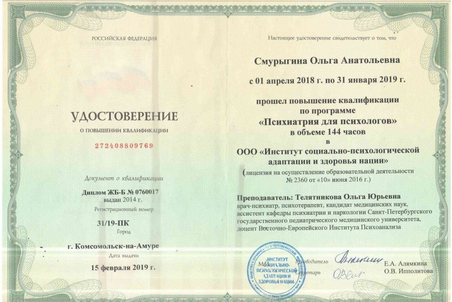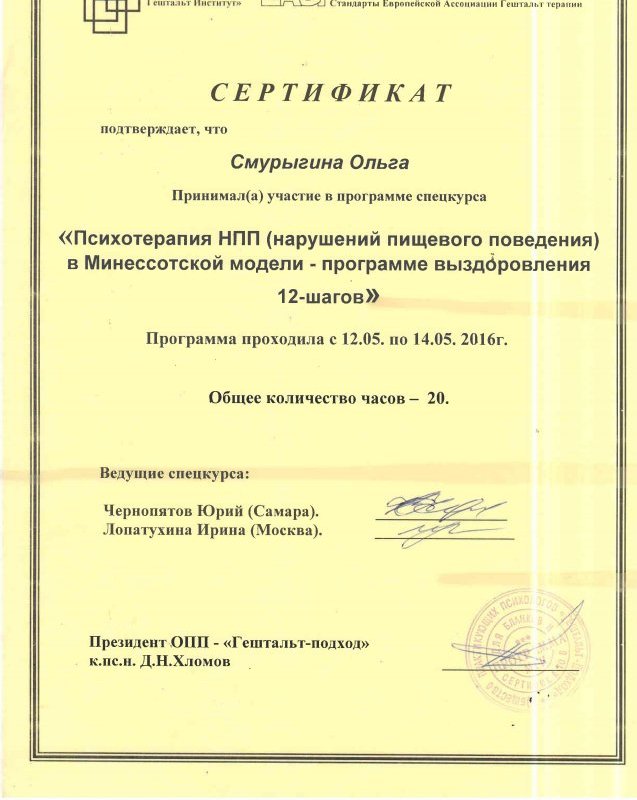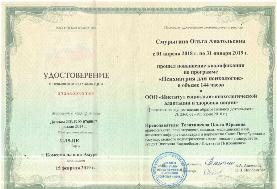 - Есть ли у Смурыгиной Ольги Анатольевны нужные сертификаты?