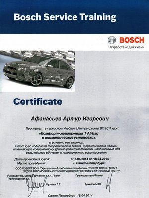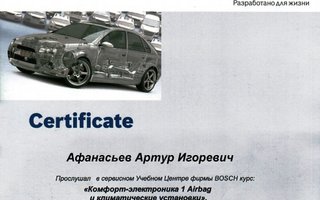- Есть ли у Афанасьева Артура необходимые сертификаты?
