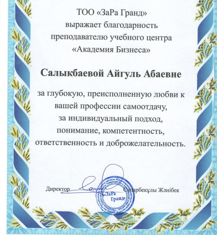 Отзывы о репетиторе Айгули Абаевне Салыкбаевой