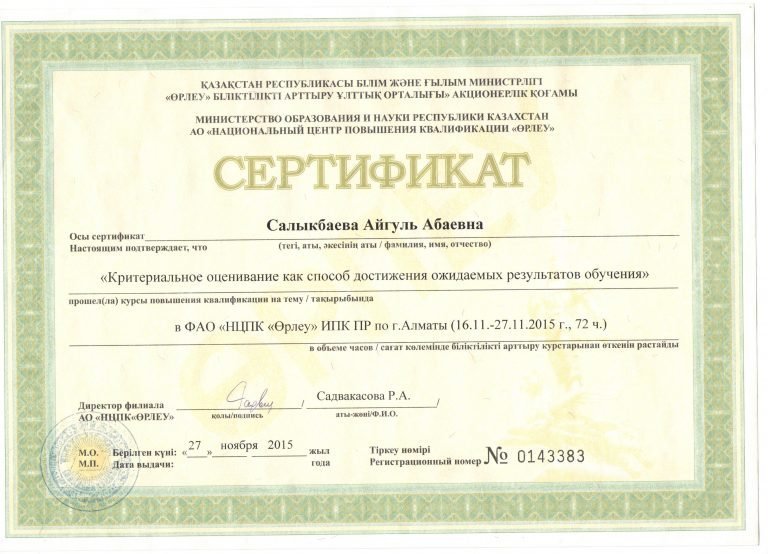 - Могу ли я ознакомиться с сертификатами Салыкбаевой Айгули Абаевны?