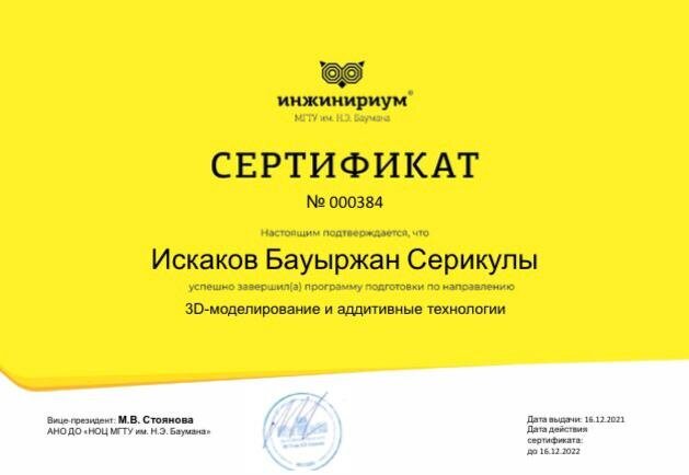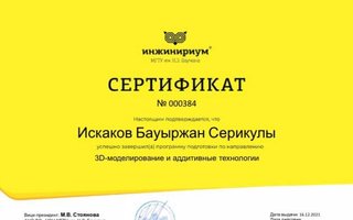 Преподаватель по 3D-моделированиюВедение занятий и мастер-классов по моделированию и 3D-печати в «Инжинириум МГТУ им. Н.Э. Баумана». Подготовка обучающихся к различным конкурсам и олимпиадам.