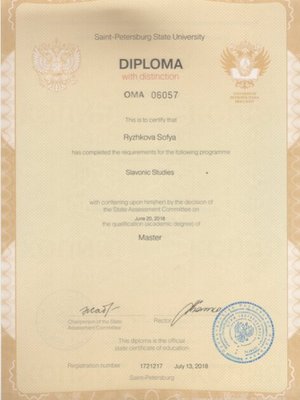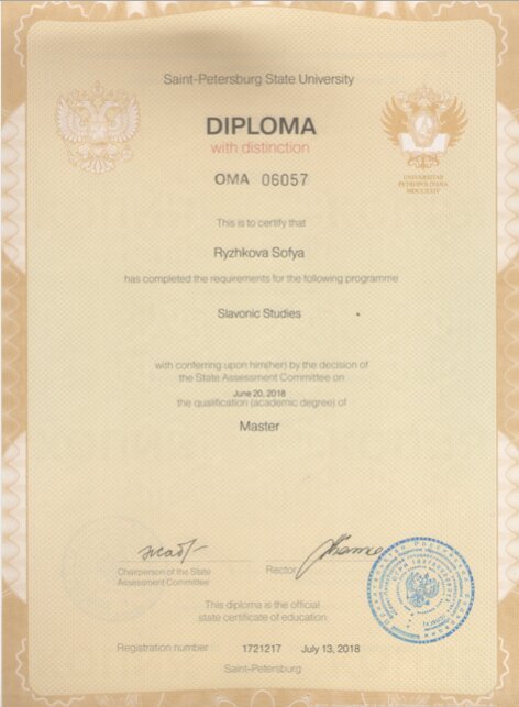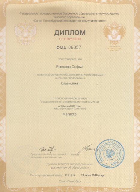 2018 — Санкт-Петербургский Государственный Университет, магистратура, филологический факультет, профиль "славянские языки"