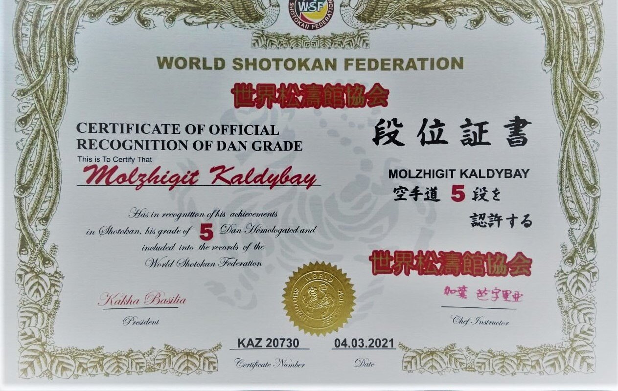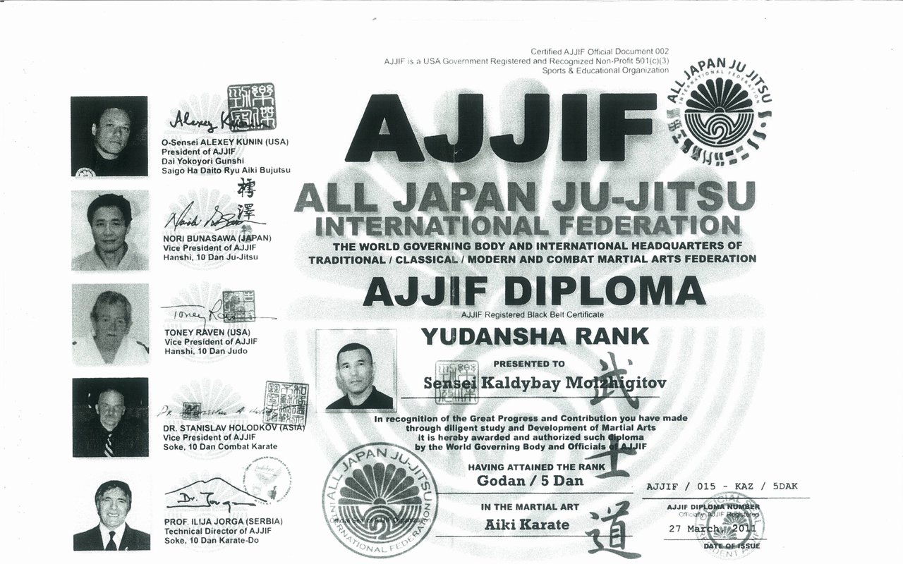 Тренер по Каратэ до Шотокан WKF, АйкикаратэСпортивное айкикаратэ – своеобразная система самозащиты, разработанная в Казахстане основателем Молжигит Калдыбаем Пазылбекулы.