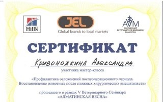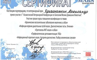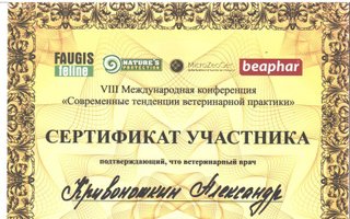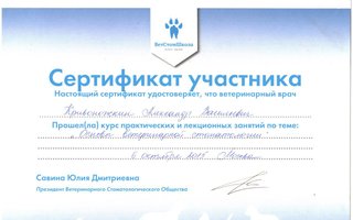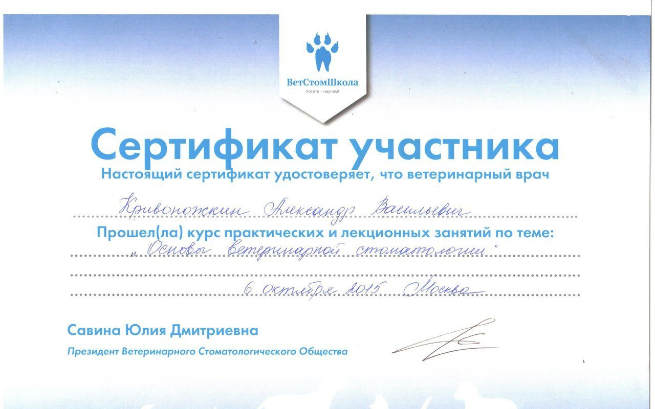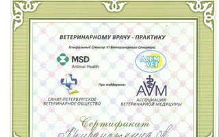 2015 — Прошел стажировку у ведущих ветеринарных специалистов Москвы в области стоматологии мелких домашних животных