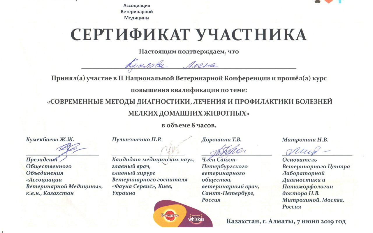 Отзывы о ветеринаре Алене Сергеевне Крыловой