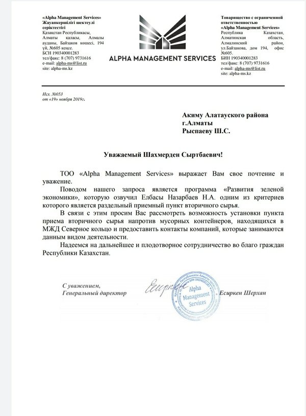 TOO "Alpha Management Services"24 ноября 2019 в 17:44