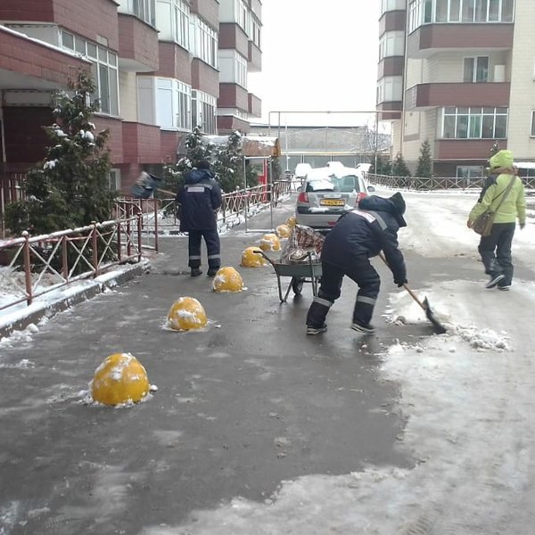 Процесс уборки снега в МЖД Северное кольцо в домах 86/7, 86/8, 86/9, 86/11, 86/13, 86/14, 86/15.