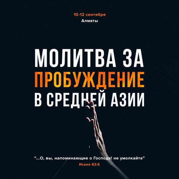 Друзья, Средне Азиатская Молитва — событие, когда все города Казахстана и страны средней Азии будут стоять в проломе за духовное пробуждение. Вас приглашает пастор Иван Крюков @ivankryukovv быть участниками этой исторической молитвы! Не пропустите это особое время! - 21—23 September Almaty, Agape church #️⃣