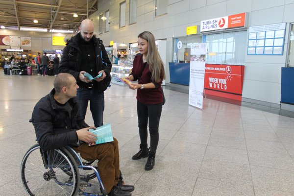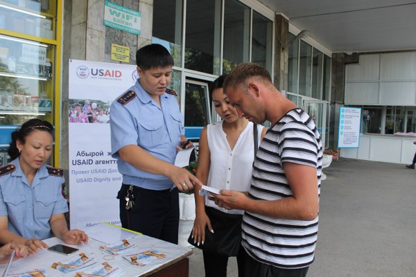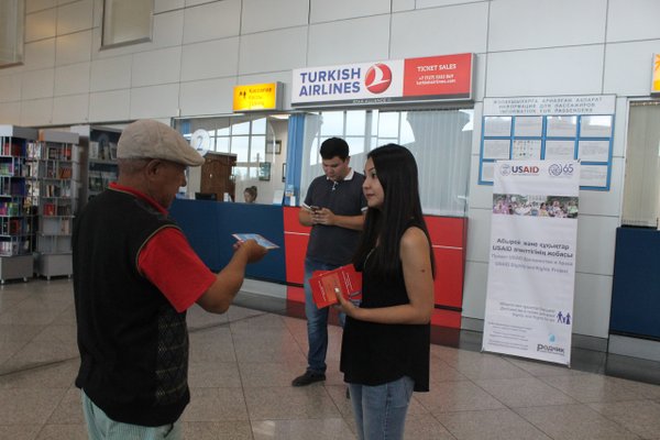 07 декабря 2016 года прошли информационная акция в рамках проекта «Достоинство и права» в Международном аэропорту г. Алматы, где ежедневно прилетают и улетают тысячи людей, как граждане Казахстана, так и иностранцы. Все желающие получили консультацию и ознакомились с информационной продукцией, распространенной во время акции, получая разъяснения о том, куда нужно обращаться в случае необходимости и как защитить свои права. Активное участие в акции приняли сотрудники транспортной полиции — ЛОВД г. Алматы.
