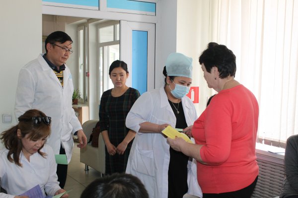уралы кеңестер берілді, кітапшалар және ескетрпелер таратылды. Өз тарапынан № 17 емхана меңгерушісі Ким В.Э., мұндай акциялардың аудан халқына өте қажет және өзекті мәселе екенің, аладғы уақыттада бұндай іс — шараларды бірлесіп өткіздіруге, қолдан келген көмекті аямайтының айтты.