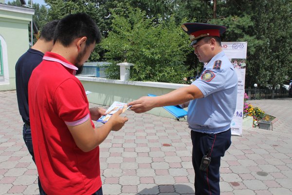 жанадарға қайда хабарласып, қандай көмек көрсетілітіні түсіндірілді. Бұл акцияға Алматы қаласы, Бостандық ауданы учаскелік полиция аға лейтенанты Тайсынов Бақытжан Қанатбекұлы қатыстысып, азамттардың өз құқтарын қалай қорғауға болатынын және келеңсіз жайда қайда және кімге хабарласуларына болатынын түсіндірді. Өз тараптарынан мешіт имамдарыда бұл шараның өте сауапты,әрі маңызды іс екенің атап атып, қолдан келгенше көмек беруге дайын екендерін атып, разышылықтарын білдірді. 13 июля 2017 года состоялась информационная акция в рамках проекта «Достоинство и права» в 2-х Мечетях Бостандыкского района г. Алматы. Все желающие получили консультацию и ознакомились с информационной продукцией, распространенной во время акции, получая разъяснения о том, куда нужно обращаться в случае необходимости и как защитить свои права. Активное участие в акции принял УИП МПС Бостандыкского района старший лейтенант Тайсынов Б.К.