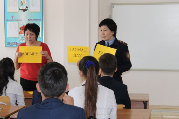 23 апреля 2016 года были проведены тренинги на тему: «Азбука безопасного поведения» для учащихся 9—10 классов школы № 186 Наурызбайского района совместно с инспектором Подразделения по защите женщин от насилия УВД Наурызбайского района Абылкасымовой Акботой. Тренинг проводился в интерактивном режиме, были показаны социальные ролики по профилактике торговли людьми и насилия в обществе, в игровом виде, проведены такие игры, как » Магазин», «Умей сказать НЕТ!». Учащиеся задавали волнующие их вопросы, активно обсуждали и высказывали свое мнение. В конце тренинга были распространены брошюры «Остерегайся торговли людьми!».