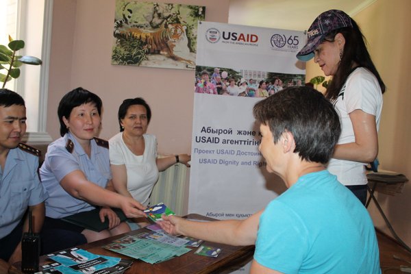 аурызбай ауданына қарасты қонақ үйлерге келушілерге түрлі кітапшалар таратылып, ақпараттық түсіндіру жұмыстары жүргізілді, шара барысында 500 — ден аса ақпарттық материалдар таратылды. Мобильное консультации в гостиницах Наурызбайского района. 29 мая 2017 года в рамках проекта агентства USAUD «Достоинства и права» в гостиницах Наурызбайского района г. Алматы: «Лейла», «Green», «Адия» были проведены очередные мобильные консультации для постояльцев и администрации гостиниц. В мероприятии приняли участие майор полиции Абылкасымова А.Б. – инспектор по защите женщин от насилия, а также участковые инспекторы МПС: капитан Жуманов К.Ж., старший лейтенант Мыктыбеков И.Б., старший лейтенант Кулпешов А.И. и волонтеры Общественного Фонда «Родник». Все желающие получили консультацию и ознакомились с информационной продукцией, распространенной во время акции, получая разъяснения о том, куда нужно обращаться в случае необходимости и как защитить свои права. Во время акции было распространено более 500 единиц информационной продукции.