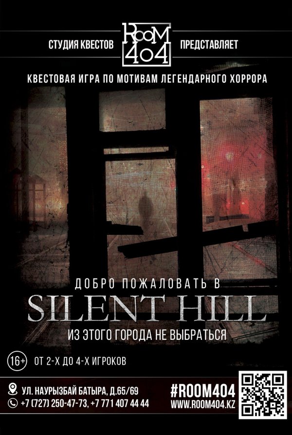 ом помещении, из которого они должны выбраться за время, ища предметы и решая головоломки, погружая игроков в уникальную атмосферу. На данный момент Студия Room 404 разработала для вас три квеста, а именно: ЭТАЖ НОМЕР 13 это увлекательный семейный квест в котором вам предстоит выбраться из странного лифта. SILENT HILL хоррор-квест, который погрузит вас в вязкую атмосферу Silent Hillа. ПОГРЕБЕННЫЕ ЗАЖИВО квест в котором Вам предстоит выбраться из очень ограниченного пространства. Уникальные ощущения гарантированы. Наш адрес: Дзержинского д.65—69. Подробный адрес — на картинке.