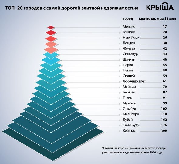 Названы 20 городов с самой дорогой элитной недвижимостью! Эксперты консалтинговой фирмы Knight Frank в рамках ежегодного отчёта Wealth Report 2017 выяснили, сколько квадратных метров элитной недвижимости можно купить за $1 млн в 20 ведущих городах мира. За основу исследователи взяли средние цены на элитку в каждом мегаполисе. 1️⃣ Лидером рейтинга в текущем году оказался Монако, где за миллион долларов можно приобрести всего 17 квадратных метров жилья. 2️⃣2️⃣ Далее за ним следуют Гонконг и 3️⃣Нью-Йорк — 20 и 26 кв. м соответственно. Лондон,… — Читать дальше