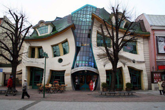 р со множеством небольших кафе и ресторанчиков. Полезная площадь двух этажей «Кривого дома» невелика всего 4000 кв.м. Торговый центр занимает первый этаж, а на втором расположились офисы двух радиокомпаний. Целью архитекторов было привлечь как можно больше посетителей в торговый центр.И, стоит отметить, что эту цель он выполнил на все сто. «Горбатый Дом» является не только наиболее часто фотографируемым зданием Польши, но и рекордсменом по количеству посетителей торгового центра. Дом построен «от людей и для людей», говорит Яцек Карновски. И слова эти подтверждаются популярностью здания среди жителей и гостей Сопота. Если вам понравилась данная страница, то обязательно подписывайтесь и отмечайте друзей