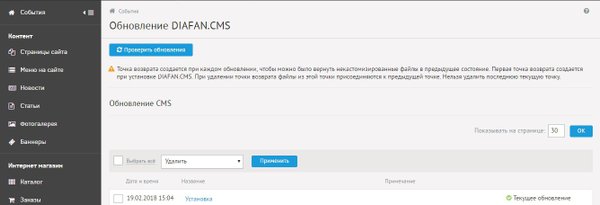 Хотите знать кто редактировал товар, опубликовал новость, удалил статью, поменял статус заказа и тд? В свежей версии DIAFAN.CMS 7.1.1 Вас ждёт новый раздел — «История действий» пользователей: Теперь пользовательская активность, как на ладони: кто — что — где — когда. Будьте в курсе! Более подробно о новом модуле в нашем блоге Чтобы установить обновления, у вас должна быть последняя версия DIAFAN.CMS. Сейчас это 7-ой релиз. Подробнее о том,… — Читать дальше