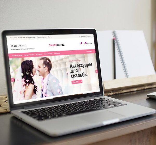 Популярный шаблон, лидер продаж стал адаптивным! Представлен в доработанном виде и новой актуальной тематике Адаптивный магазин свадебных платьев!