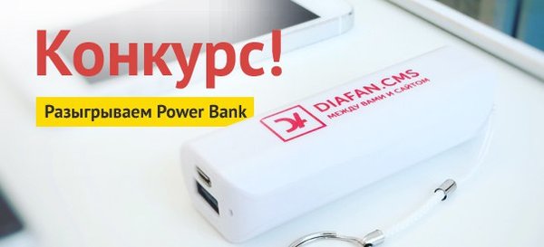 Вот лето пролетело быстро, впрочем, как всегда. Но хорошие события продолжаются. Объявляем новый конкурс от DIAFAN.CMS! Главный приз фирменный Power bank. Просто поставьте «нравится» на странице DIAFAN.CMS, если вы до сих пор этого не сделали, и «лайкните» эту запись. Победителем станет тот, у кого в профиле больше друзей. Итоги подведем через неделю.
