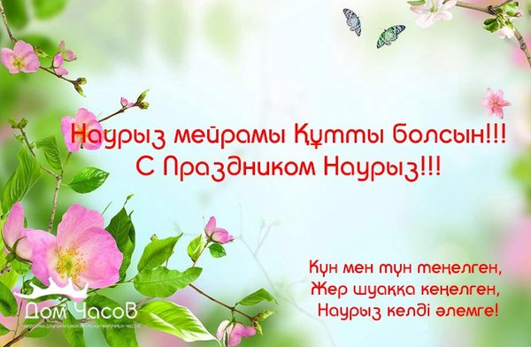 Наурыз мейрамы құтты болсын!!! С праздником Наурыз!!! Құрметті достар! Сіздерді шын жүректен Наурыз мейрамымен құттықтаймыз! Наурыз көктемде келеді, осы уақытта табиғат өзгеше түрге енеді. Бұл мереке өміріңізге тек жақсы өзгеріс әкелсін! Сіздерге және туыстарыңызға денсаулық пен қуаныш, амандық пен бақыт тілейміз! Ізгі тілекпен «Дом Часов» Дорогие друзья! От всего сердца поздравляем Вас с праздником Наурыз! Праздник Наурыз приходит с весной, в это время природа оживает и возрождается. Пусть этот праздник принесет в Вашу жизнь только хорошие изм… — Читать дальше